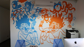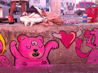 Llegué por segunda vez a Puebla invitado a pintar en el festival de murales LA RUEDA PROMOTORA, que en su primera edición se centraba en el Barrio de El Alto, uno de los primeros asentamientos de la Ciudad. El organizador del festival es un mae conocido como el MilAmores, los días en casa de MilAmores fueron increíbles, nos pasábamos las tardes pintando, por la noche fiestilla, dibujar, cotorrear, éramos un montón de pintores de todas partes compartiendo, breteando entre todos para hacer algo significativo en un barrio olvidado, maravilloso este oficio de pintar murales que nos puede llevar por tantos lugares... Me tocó pintar una Biblioteca Pública, de una vez pensé en pintar un Fausto, luego empapándome de las tradiciones del barrio conocí sobre el carnaval de Huehues y los diablitos, una celebración donde se ponen máscaras de diablos y españoles, acompañado de una caravana con baile y música, muy parecida a las tradicionales mascaradas ticas.